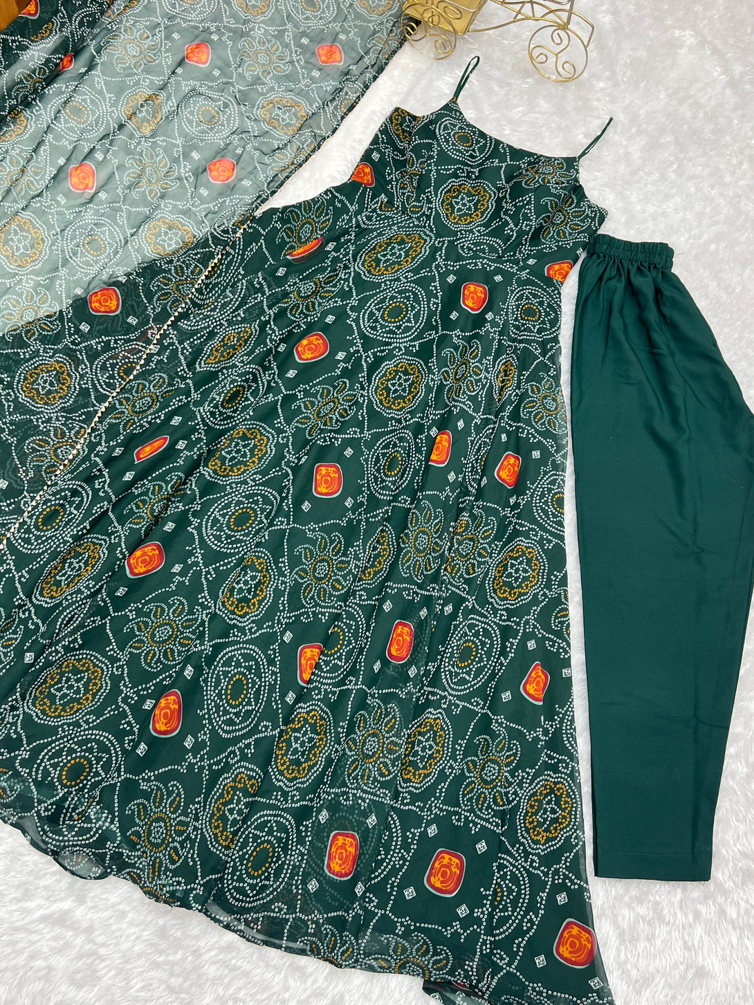 Beautiful Green Color Bandhani Print Anarkali Suit