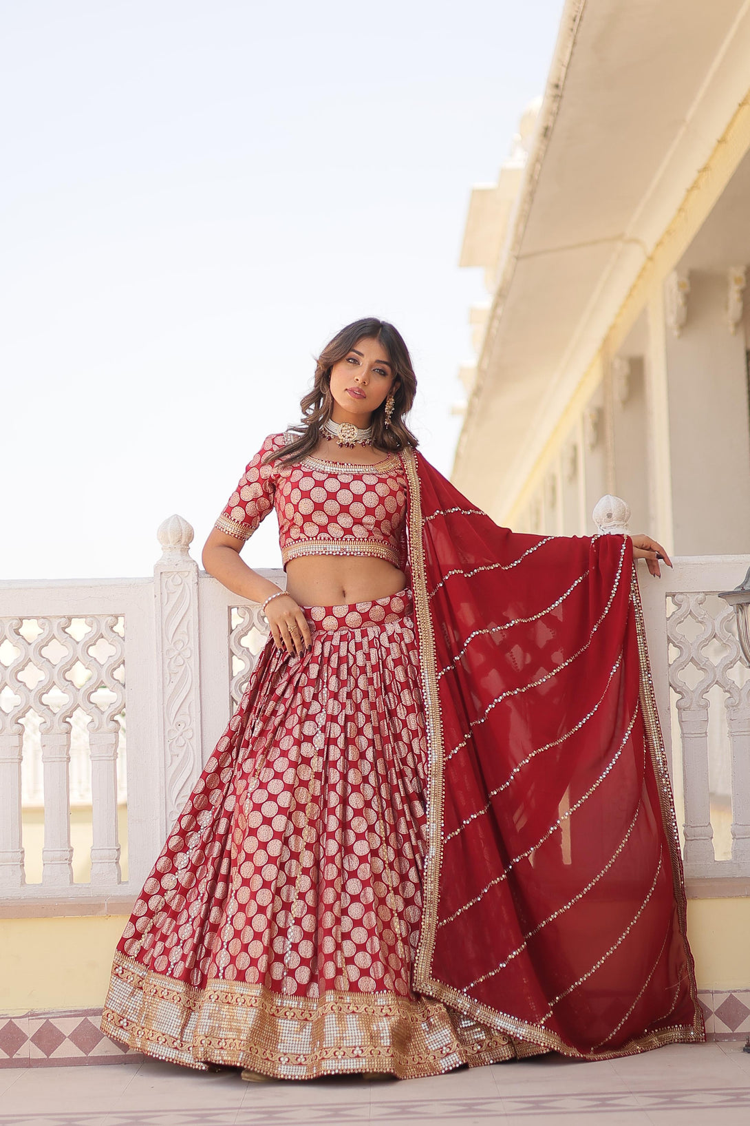 Designer Jacquard Work Red Color Lehenga Choli