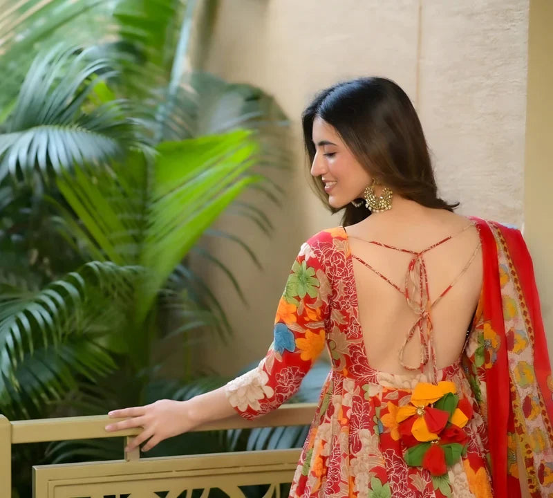 Beautiful Designer Multi Color Muslin With Digital Printed Anarkali Suit Set