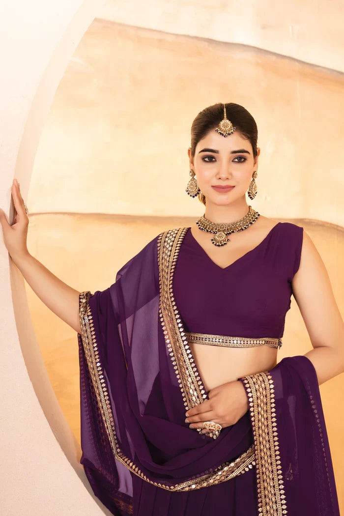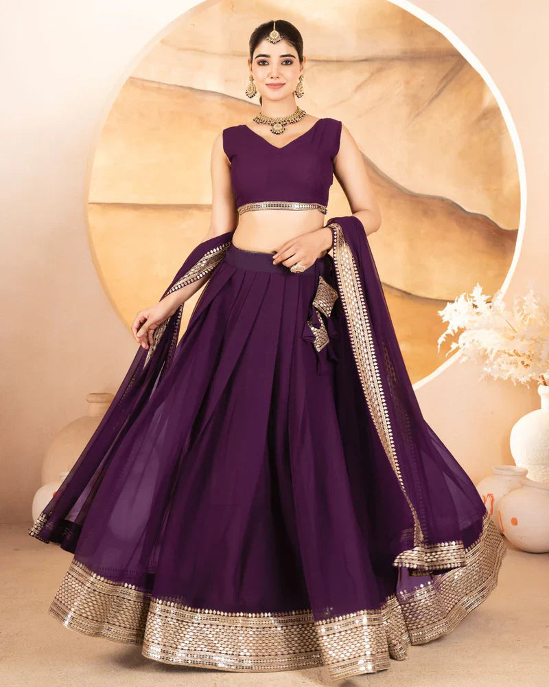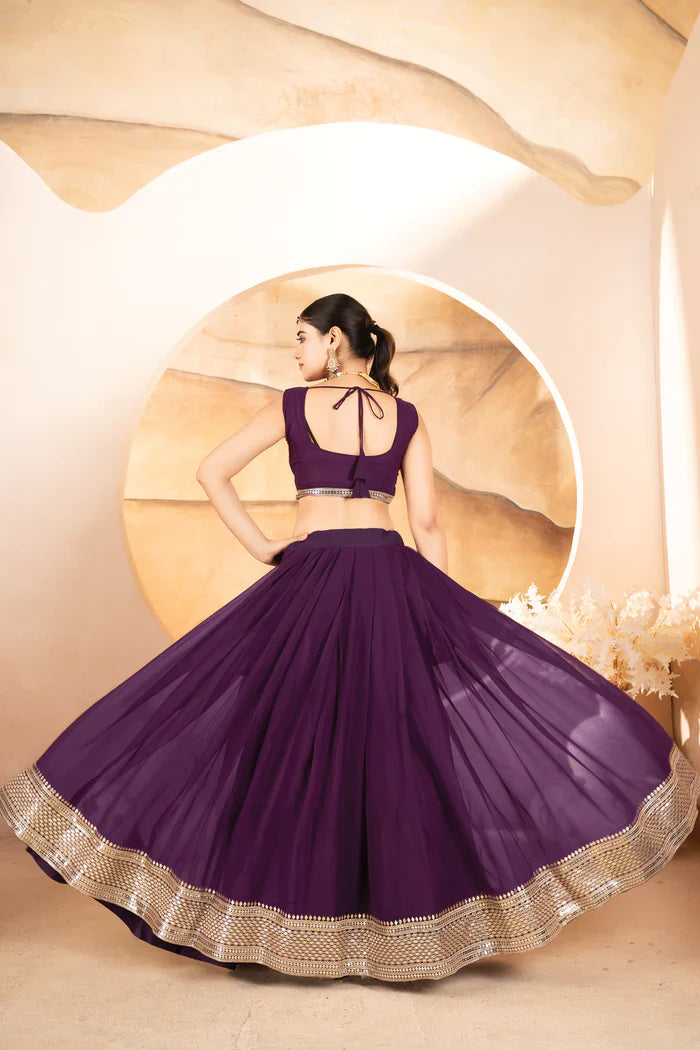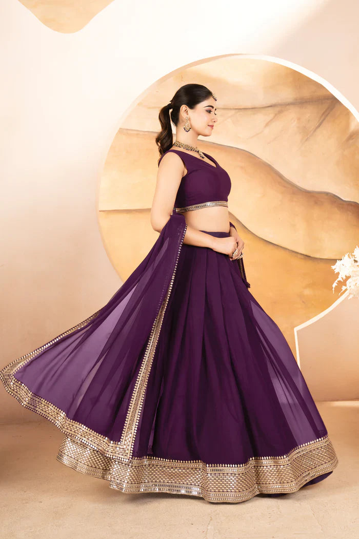 Wedding Wear Wine Color Faux Blooming With Embroidered Sequins Work Designer Beautiful Lehenga Choli