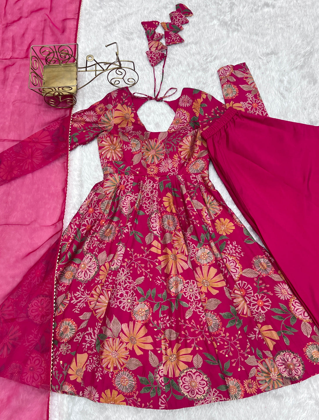 *Pure Soft Roman silk Chanderi Discharge Print Fabric Fully Flair Kediya Style Kurta, With Dupatta Set, Palazzo Ready To Wear*
