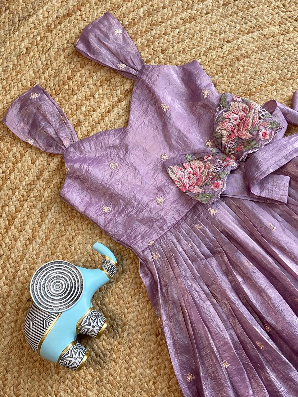 This Crush Organza Dress Is Crafted With Elegant Thread Embroidery And A Charming Bow Tie-Up, Making It The Perfect Pick For Birthdays, Parties, And Festive Occasions. ✨