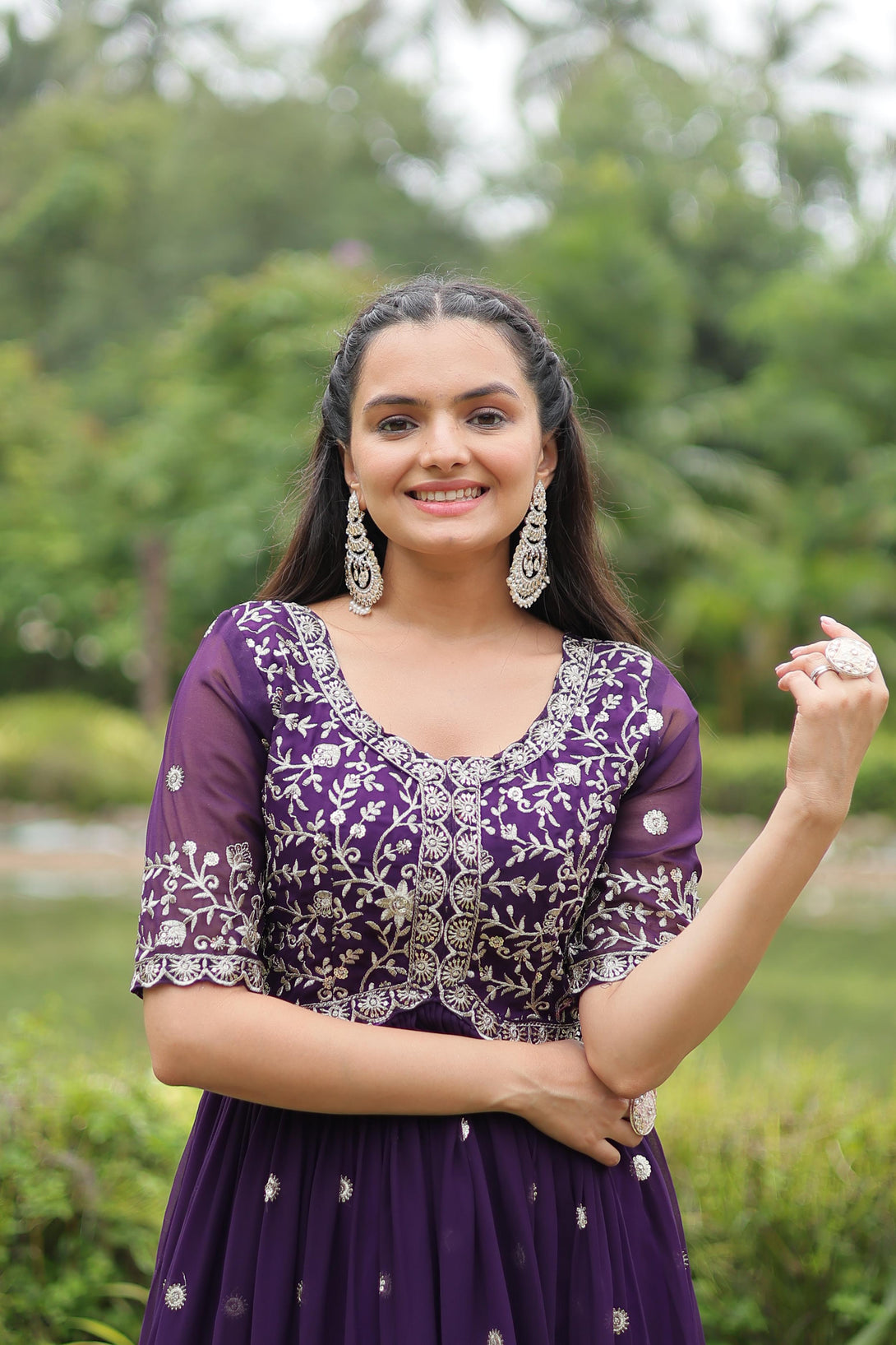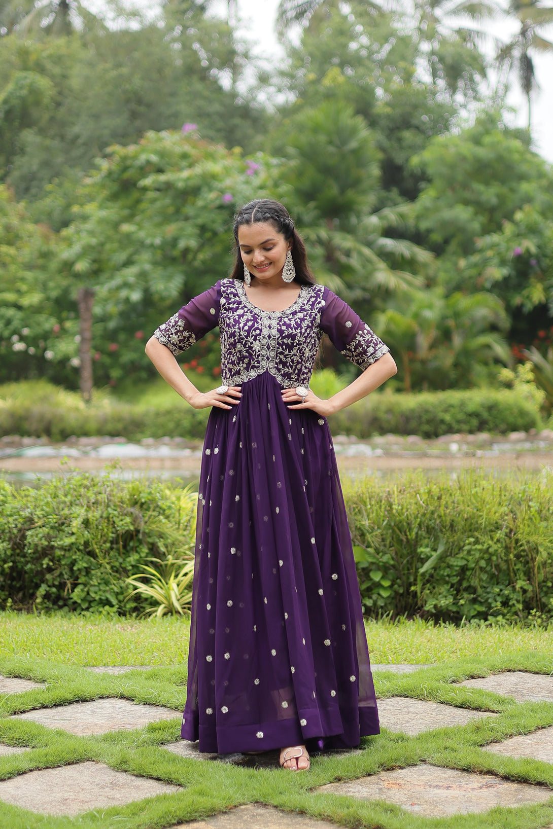 Party Wear Purple Color Embroidery Sequin Work Designer Gown