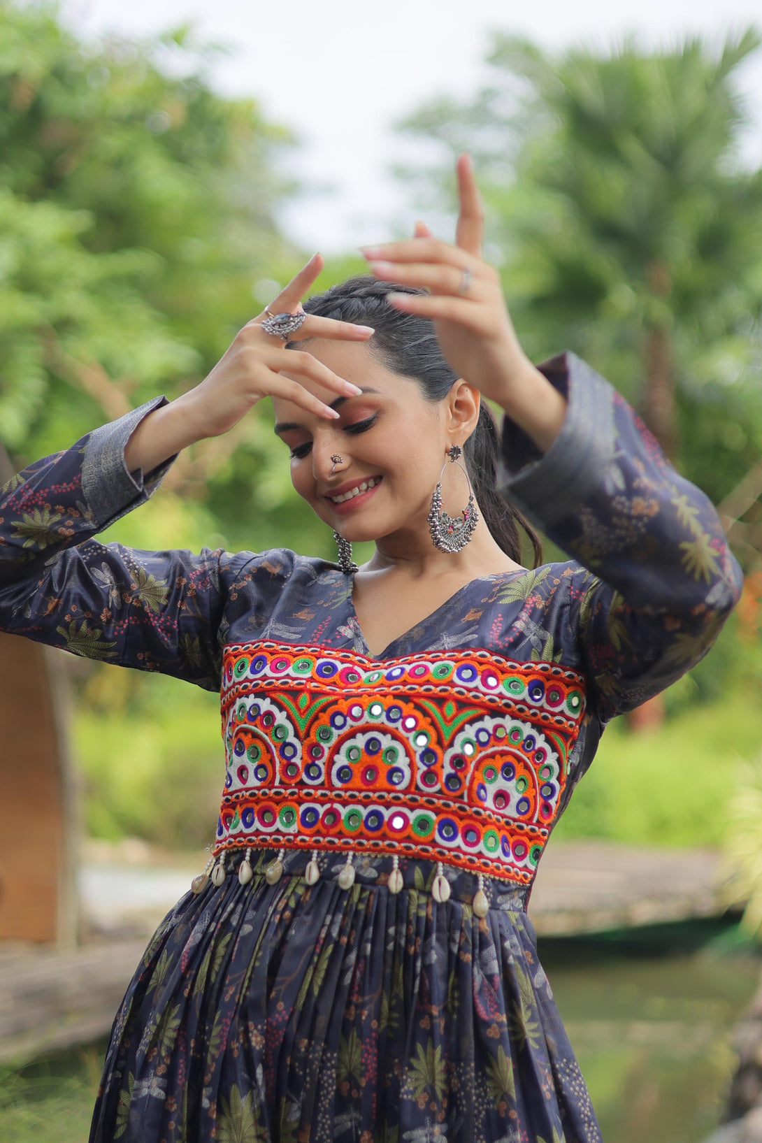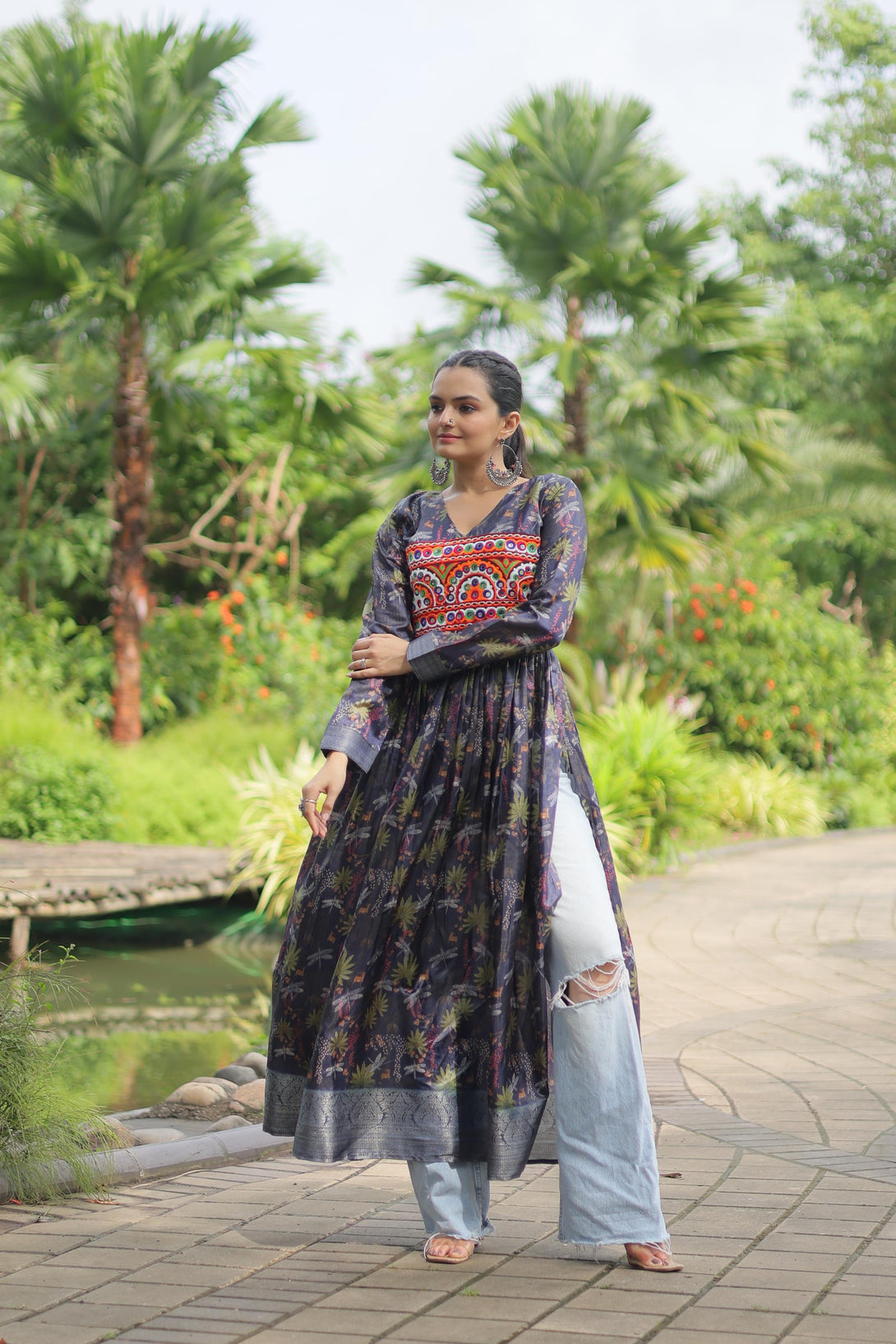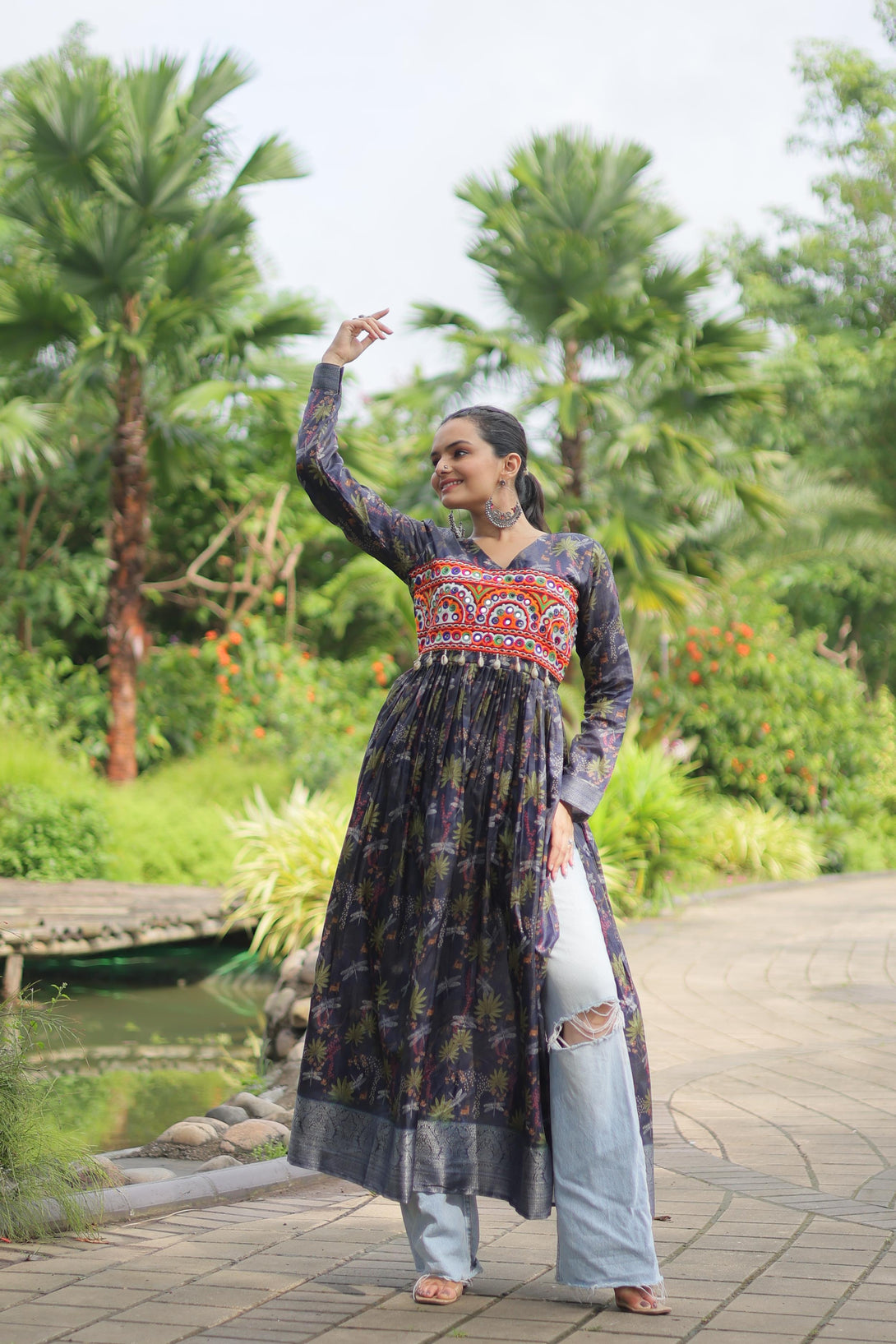 Printed With Kutchi Gamthi Work Multi Color Navratri Kurti