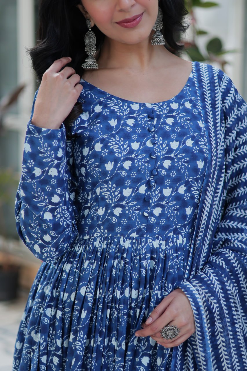 Sky Blue Color Pure Cotton Printed Designer Anarkali Suit