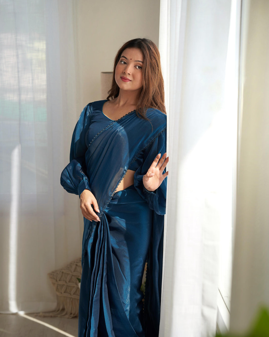 Ready To Wear Predrapped Reay To Wear Saree With Full Sttiched Blouse Jimmy Choo Fabric