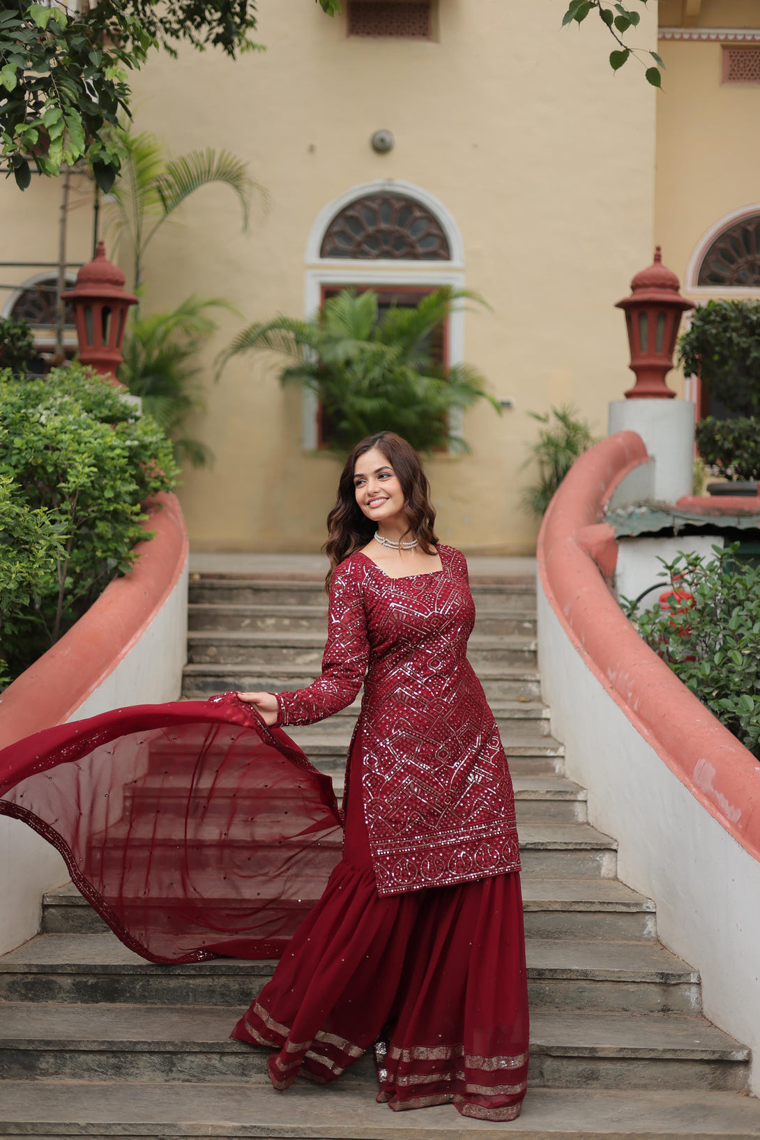 šš» Fabric & Work :- Faux Georgette With Sequins Embroidered Cutwork With Gota-Patti Stitched Lace Border