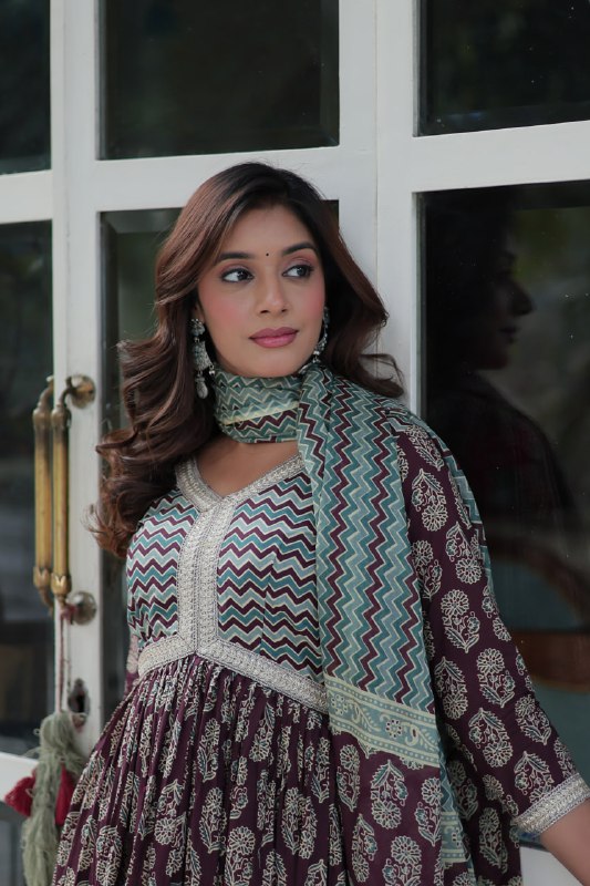 Wine Color Pure Cotton Printed Designer Palazzo Pent Suit